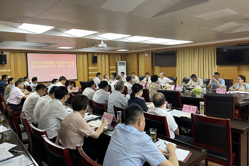 7月5日,市政协党组暨机关党组中心组第25次理论学习(扩大)会召开,学习习近平总书记在中共中央政治局会议等会议活动上的重要讲话指示精神和省委市委有关会议精神。市政协党组书记、主席张夏林主持会议并讲话,市政协副主席贾瑄、张士平、刘会秋、丁志友、吴明楣、程平,一级巡视员周珍花,市政协秘书长王春生出席会议。